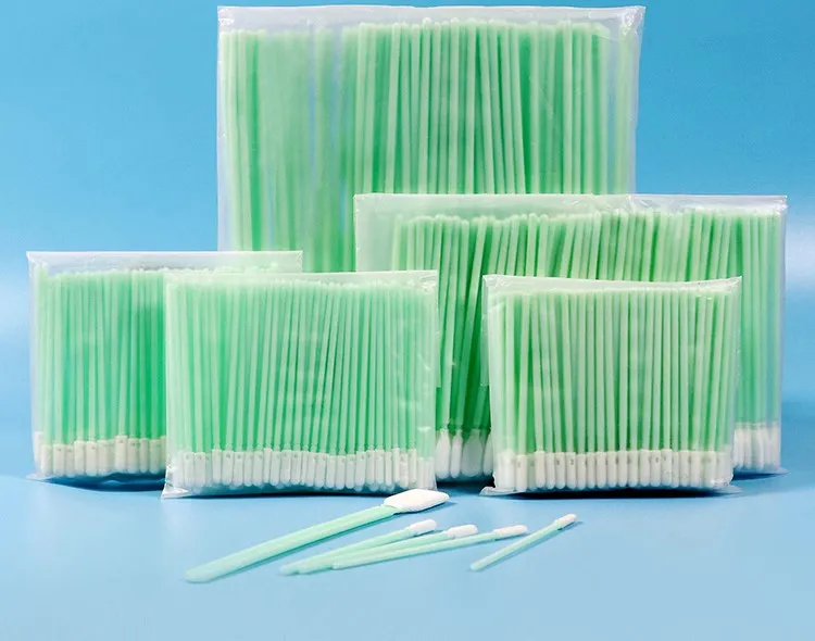 Small disposable foam swabs with excellent absorbency low particle generation and superior dust removal for microelectronics, printers, and lab tools.
